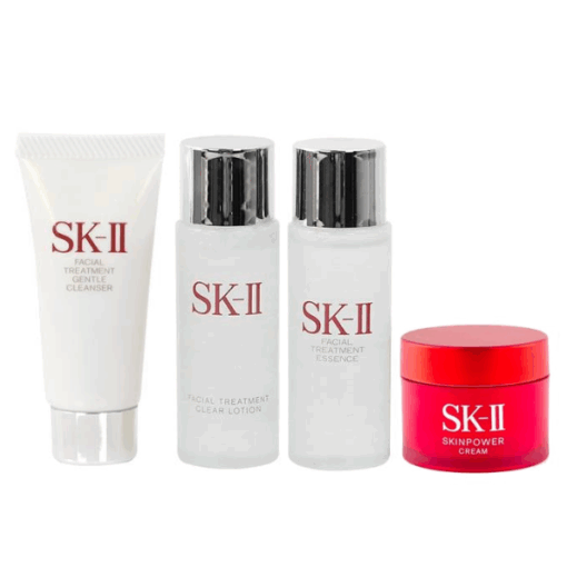 Set SK-II Mini 4 Món Chống Lão Hoá gồm 4 sản phẩm PITERA™ thiết kế mini tiện lợi cho da trẻ hóa: Facial Treatment Cleanser, Facial Treatment Essence, Skinpower Cream 15g, Skinpower Eye Cream 2.5g. Bộ kit lý tưởng để dùng thử hoặc mang theo mọi lúc, giúp da bạn luôn căng mịn và đầy sức sống.